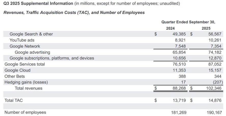 We are also seeing that AI Mode is resonating well with users. In the United States, we have seen strong and steady growth in usage week after week since its launch, and queries doubled during the quarter. In the past quarter, we rolled out AI Mode globally in 40 languages in record time. It now has over 75 million daily active users. And we launched more than 100 product enhancements in the third quarter, an incredibly fast pace. Most importantly, AI Mode is already driving incremental growth in total queries for Search.”