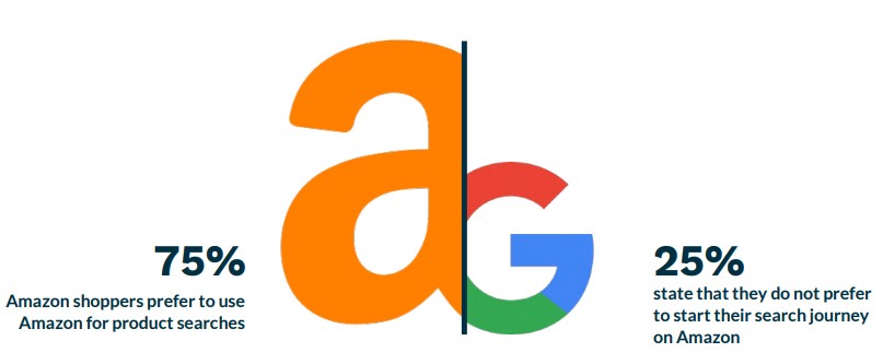 El 75% de los compradores de Amazon afirma que comienzan sus búsquedas de productos directamente en Amazon, incluso cuando no tienen un artículo específico en mente. El 25% restante, muestra su preferencia por Google.