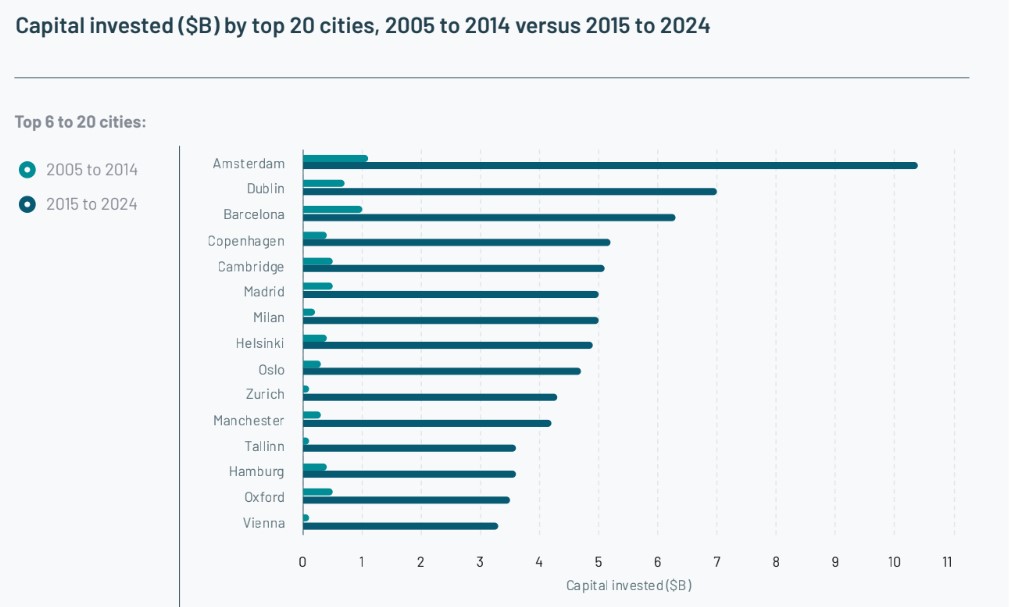 Si bien es verdad que las ciudades primarias de Londres, Ámsterdam y Estocolmo atraen el 60% del capital de riesgo del país, la inversión total se ha expandido a otras ciudades, algunas de ellas en España, como Barcelona y Madrid.