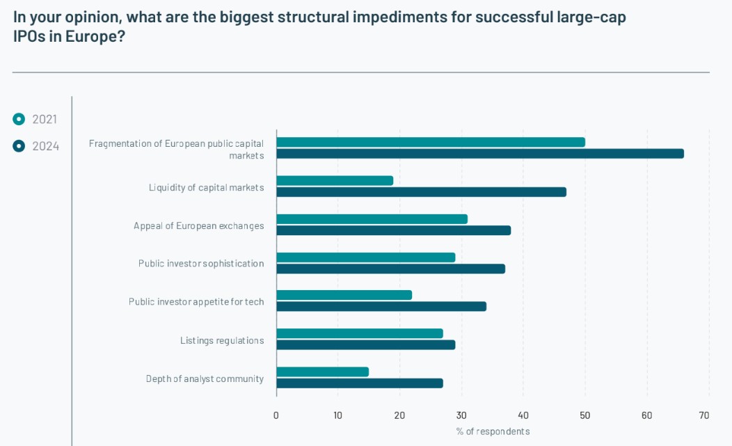 En tu opinión, ¿cuáles son los mayores impedimentos estructurales para las IPOs de gran capitalización exitosas en Europa?