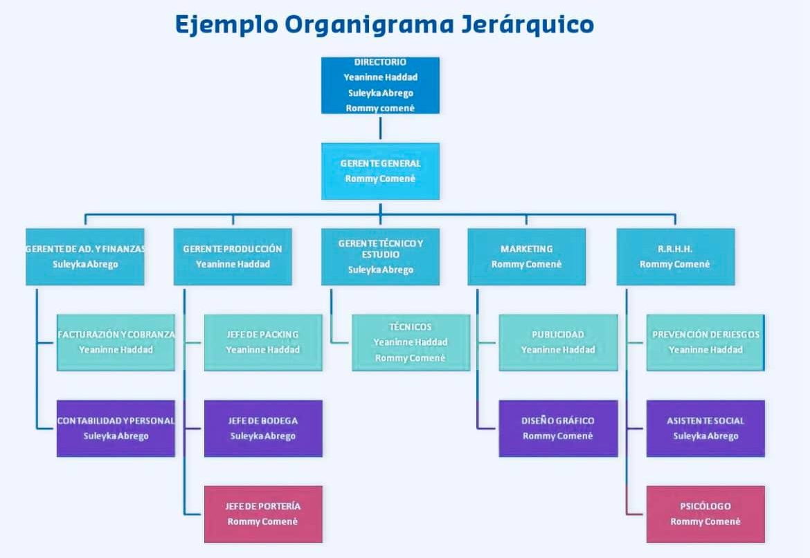 Cada elemento en un organigrama empresarial, ya sea un departamento, una posición o un empleado, está representado de manera gráfica con el objetivo de brindar claridad sobre la estructura organizativa. Esto incluye la identificación de roles clave, como directores ejecutivos, gerentes de departamento y personal de nivel operativo, así como la delimitación de responsabilidades específicas asociadas con cada función.