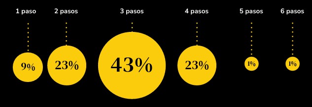 Son muy pocos los eCommerce que utilizan más de 4 pasos en el proceso de checkout: el 1% implementa 5 pasos y otro 1%, 6 pasos. En ambos casos, disminuyeron en un 1% con respecto a la edición anterior.